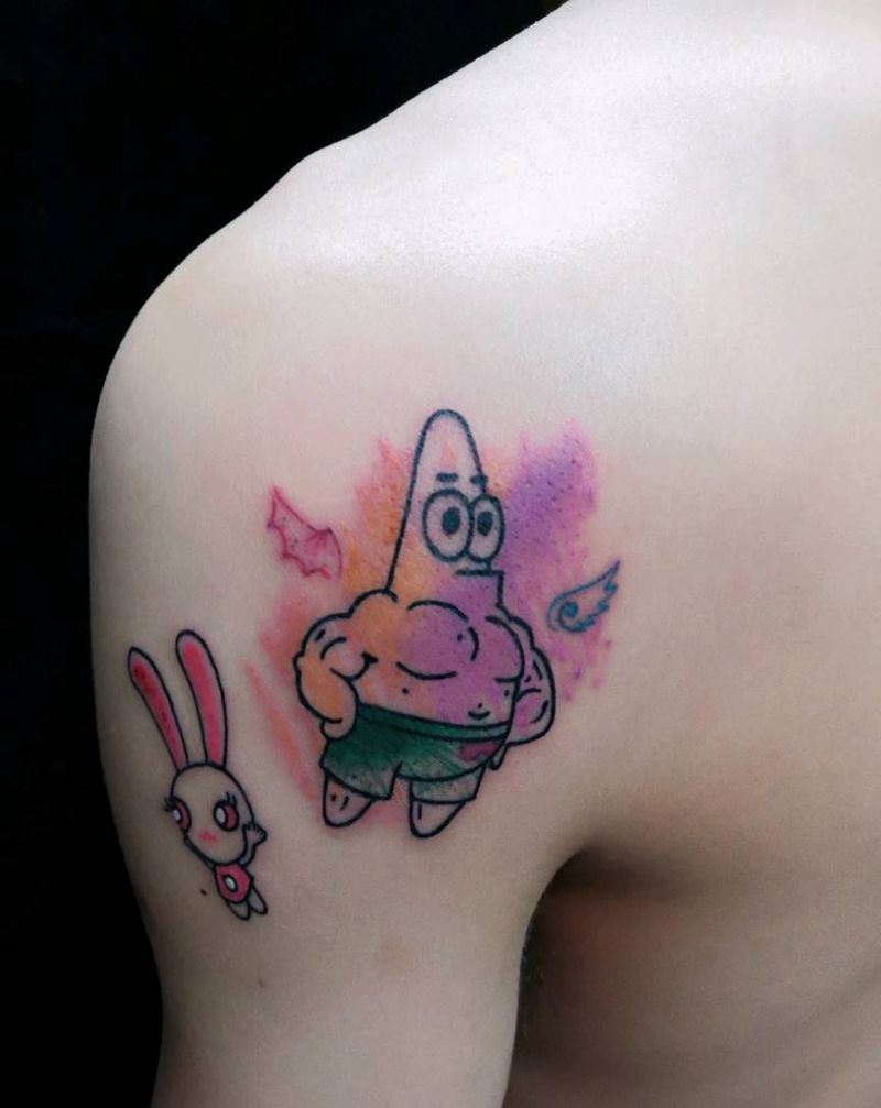 彩色卡通图案纹身图片_手臂水彩水墨纹身图案