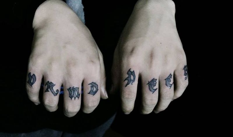 当前位置: 首页 >山东省潍坊市纹身店-青尘-TATTOO纹身图案>手指英文纹身纹身图片_手部花体字纹身图案