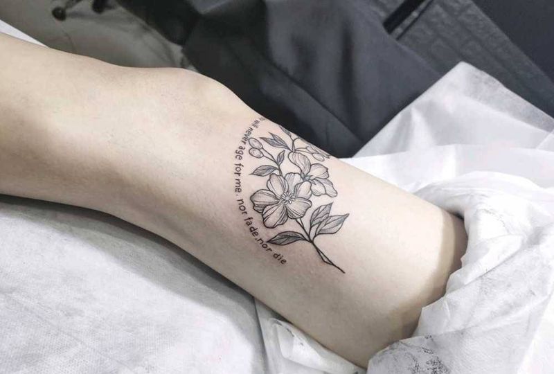 素花纹身图片_腿部纹身图案
