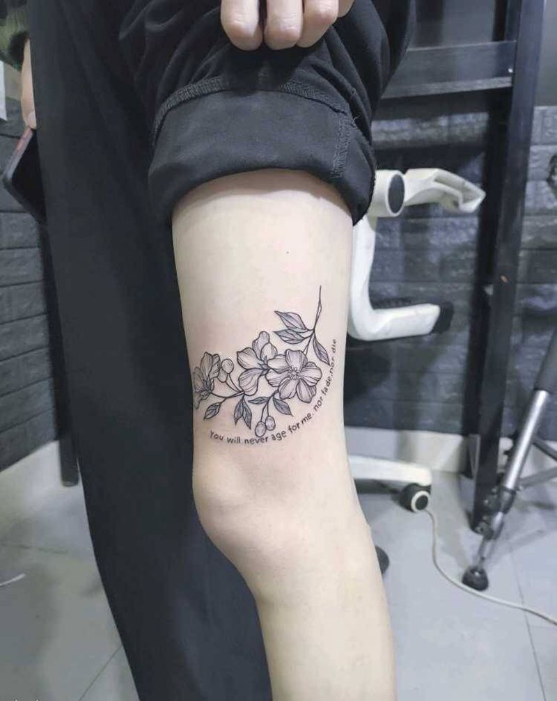 素花纹身图片_腿部纹身图案