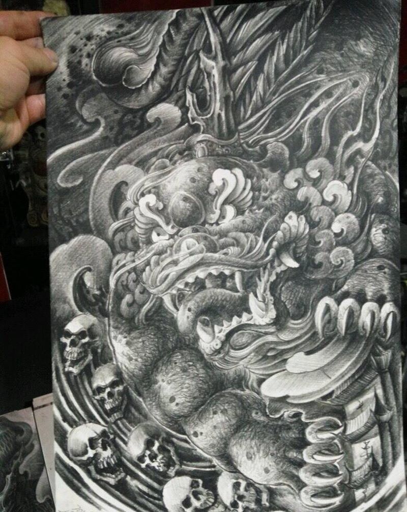 • T网红王老大花腿龙纹身图片_腿部新传统纹身图案