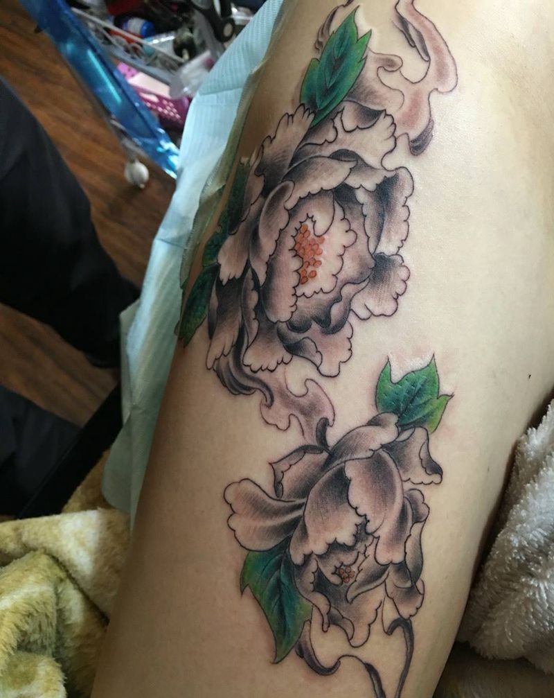 当前位置: 首页 >山东省烟台市纹身店-蓬莱.无界刺青纹身图案>牡丹纹身图片