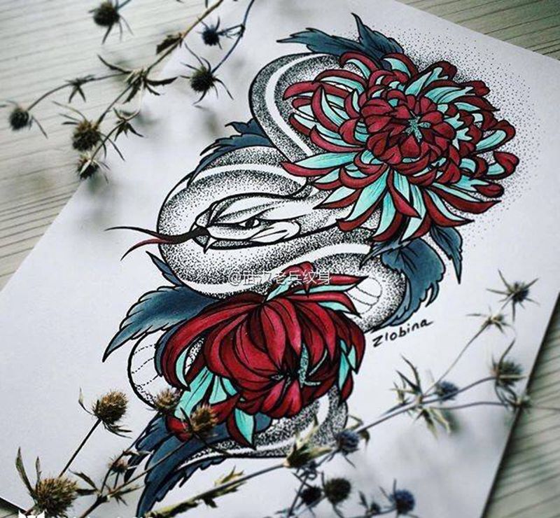 • 女性大花胸纹身_43张霸气漂亮的女性大花胸纹身图案作品