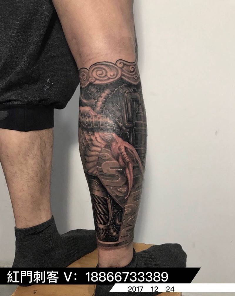 • T网红王老大花腿龙纹身图片_腿部新传统纹身图案