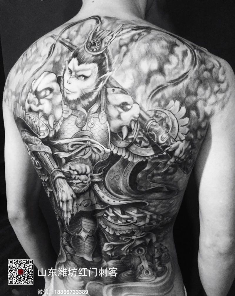 黑灰满背纹身图案