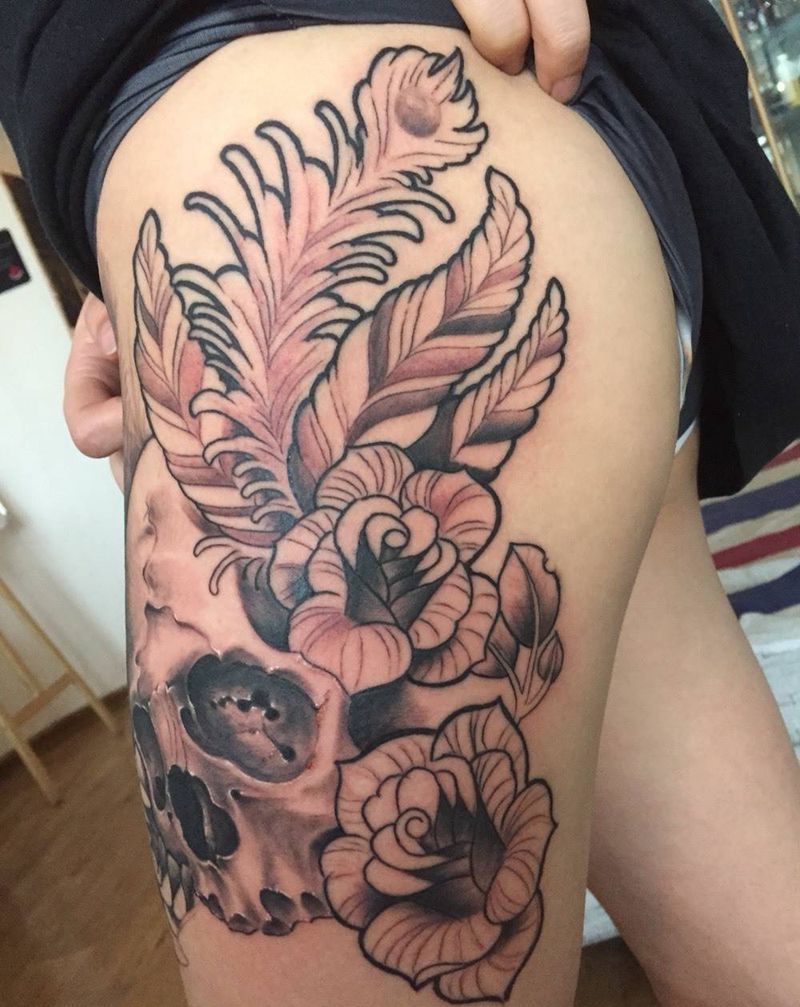 • T网红王老大花腿龙纹身图片_腿部新传统纹身图案