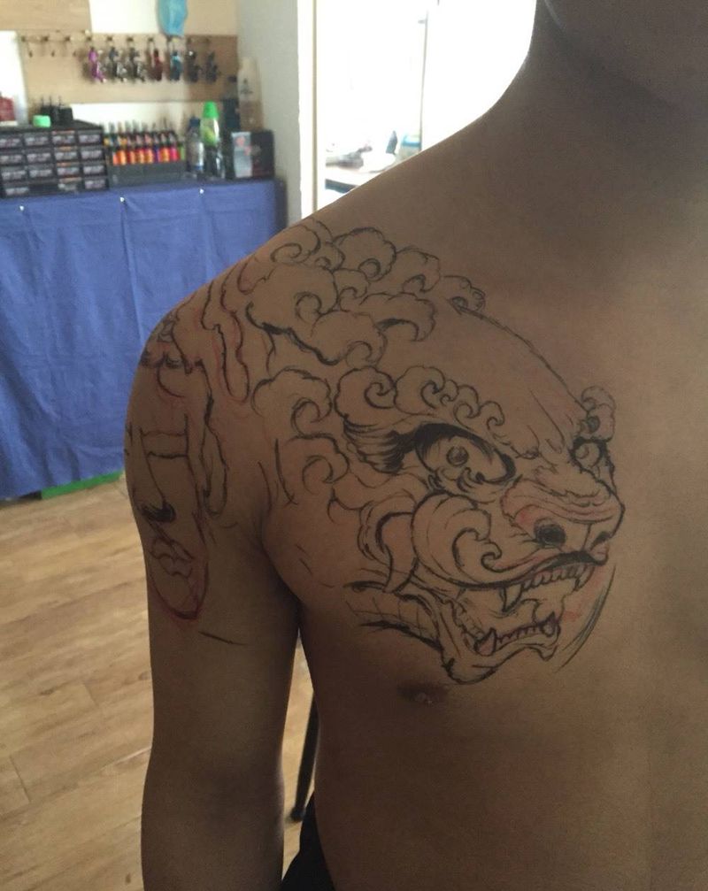 当前位置: 首页 >山东省潍坊市纹身店-坤度纹身图案>半胛 富狮+石佛纹身图片