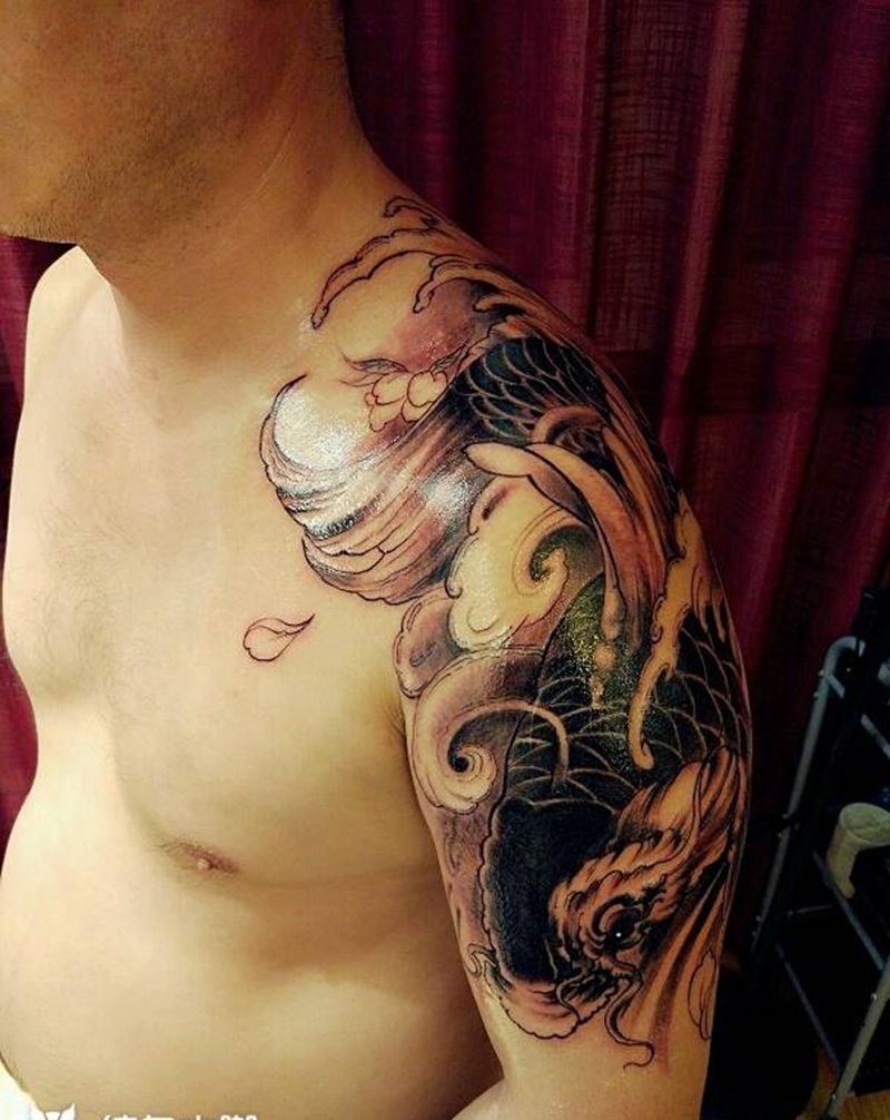 当前位置: 首页 >山东省潍坊市纹身店-青刺青工作室纹身图案>鲤鱼纹身图片_传统动物鲤鱼成品纹身图案
