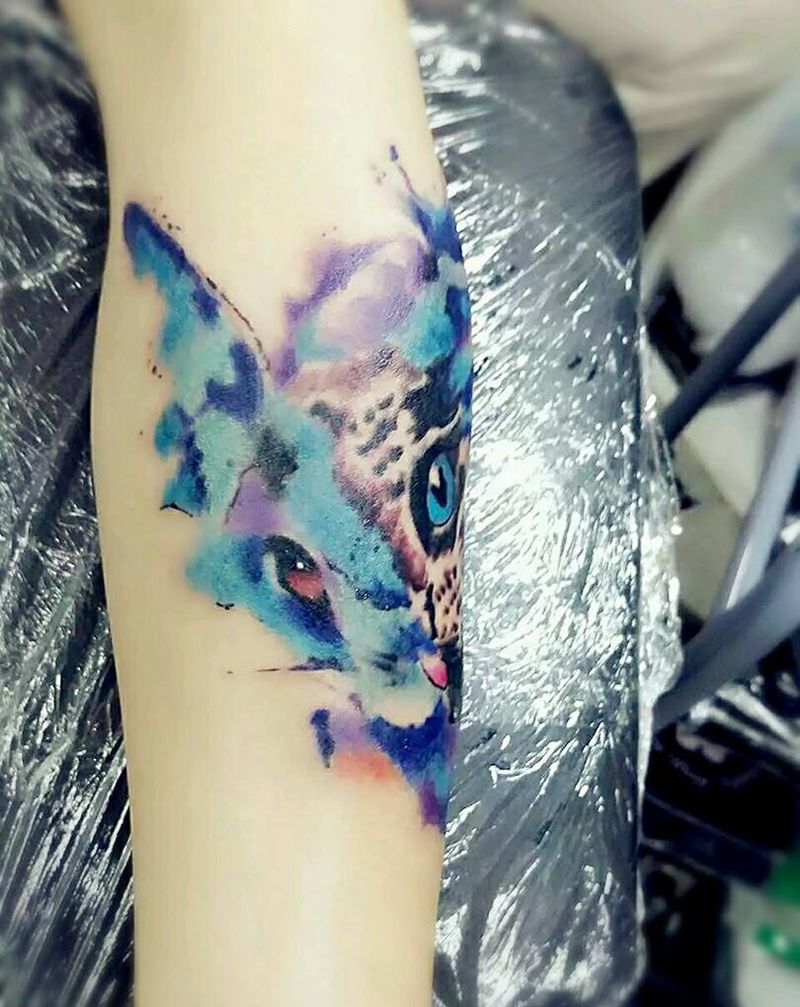 当前位置: 首页 >山东省潍坊市纹身店-青刺青工作室纹身图案>水彩纹身纹身图片_手臂欧美清新动物水彩成品纹身图案