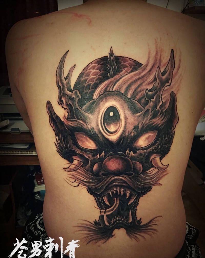 当前位置: 首页 >山东省潍坊市纹身店-青刺青工作室纹身图案>九龙拉棺未完纹身图片_成品背部传统纹身图案