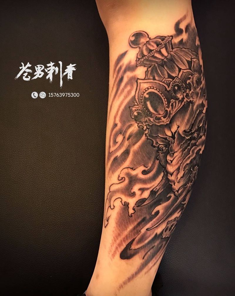 当前位置: 首页 >山东省潍坊市纹身店-青刺青工作室纹身图案>象神纹身图片_成品腿部纹身图案