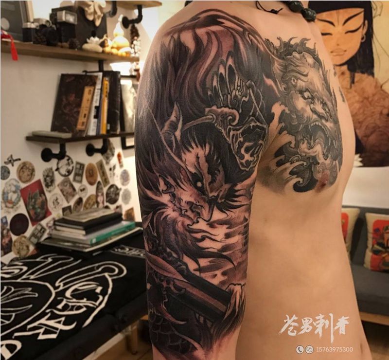 • 纹身吧推荐的披肩图腾半胛纹身图案作品展示