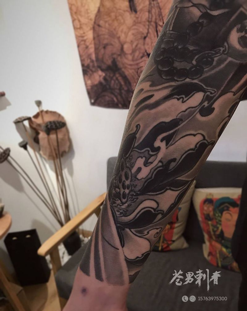 一组15张莲花纹身手