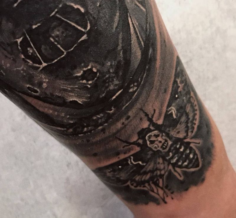 当前位置: 首页 >山东省潍坊市纹身店-青刺青工作室纹身图案>沉默的羔羊纹身图片_手臂欧美人物成品纹身图案