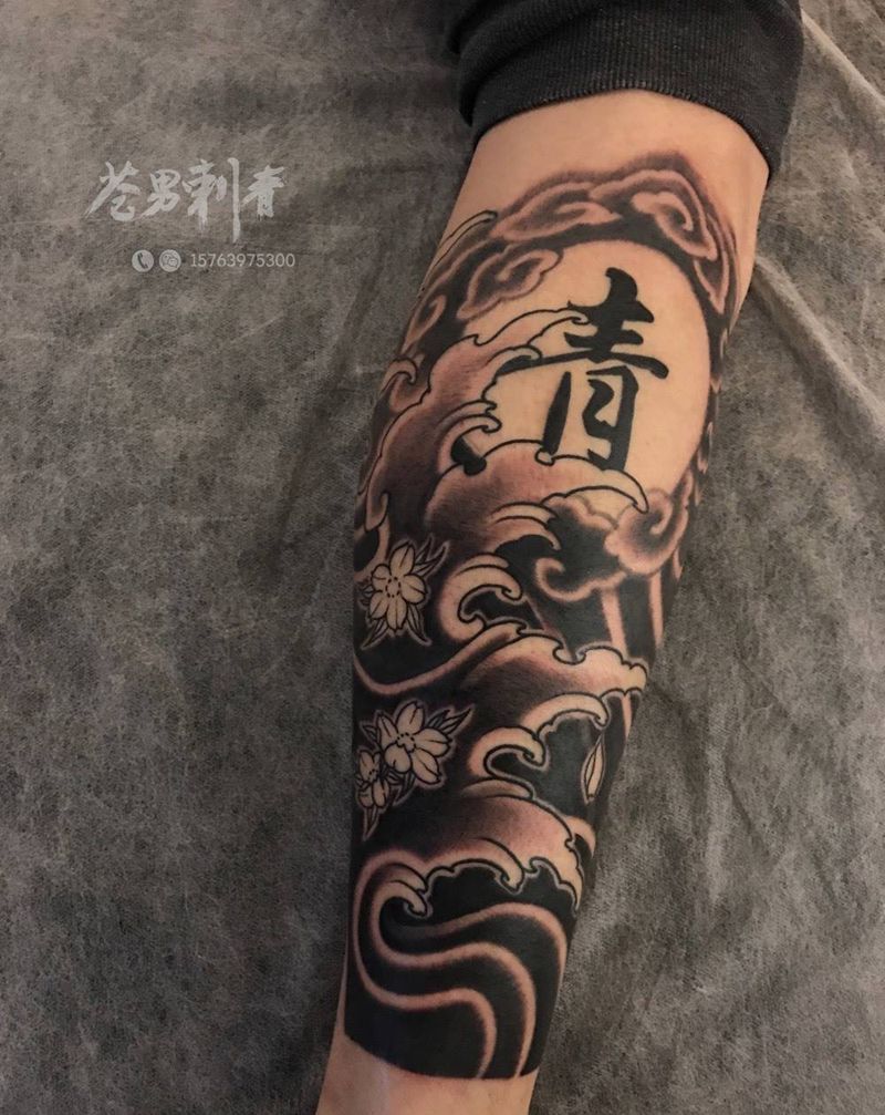 当前位置: 首页 >山东省潍坊市纹身店-青刺青工作室纹身图案>一个包小腿水浪设计纹身图片_成品腿部传统纹身图案