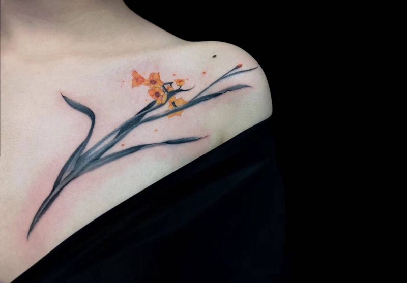 当前位置: 首页 >山东省潍坊市纹身店-青刺青工作室纹身图案>◾️水仙花纹身图片_胸部水墨纹身图案