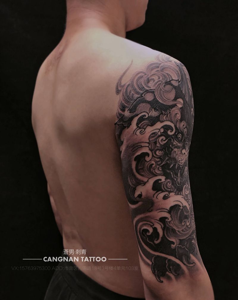 当前位置: 首页 >山东省潍坊市纹身店-青刺青工作室纹身图案>神兽纹身图片_手臂新传统纹身图案