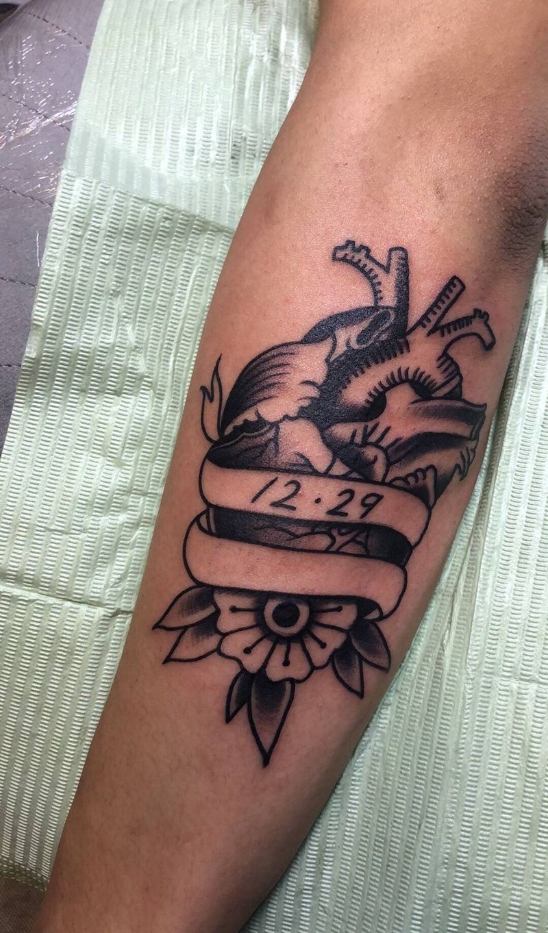 当前位置: 首页 >山东省潍坊市纹身店-青刺青工作室纹身图案>心脏纹身图片_手臂Old School纹身图案