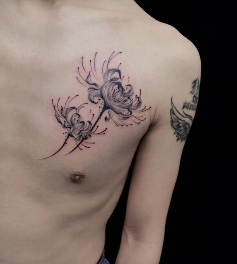 当前位置: 首页 >山东省潍坊市纹身店-青刺青工作室纹身图案>彼岸花纹身图片_胸部水彩纹身图案