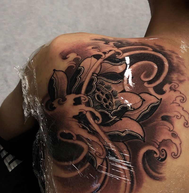 一组15张莲花纹身手
