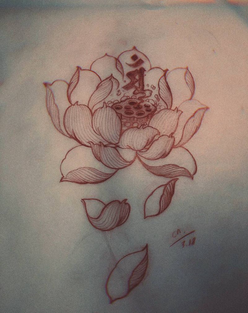 当前位置: 首页 >山东省潍坊市纹身店-青刺青工作室纹身图案>给顾客设计的荷花小稿纹身图片_新传统纹身图案