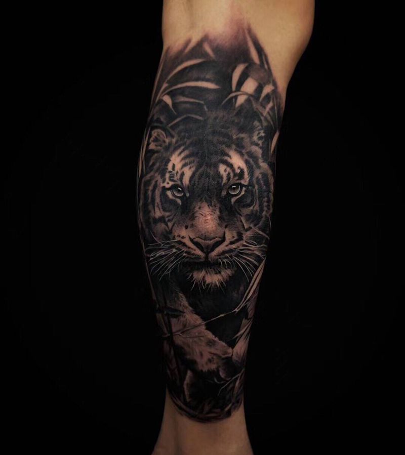 当前位置: 首页 >山东省潍坊市纹身店-青刺青工作室纹身图案>虎纹身图片_腿部欧美写实纹身图案
