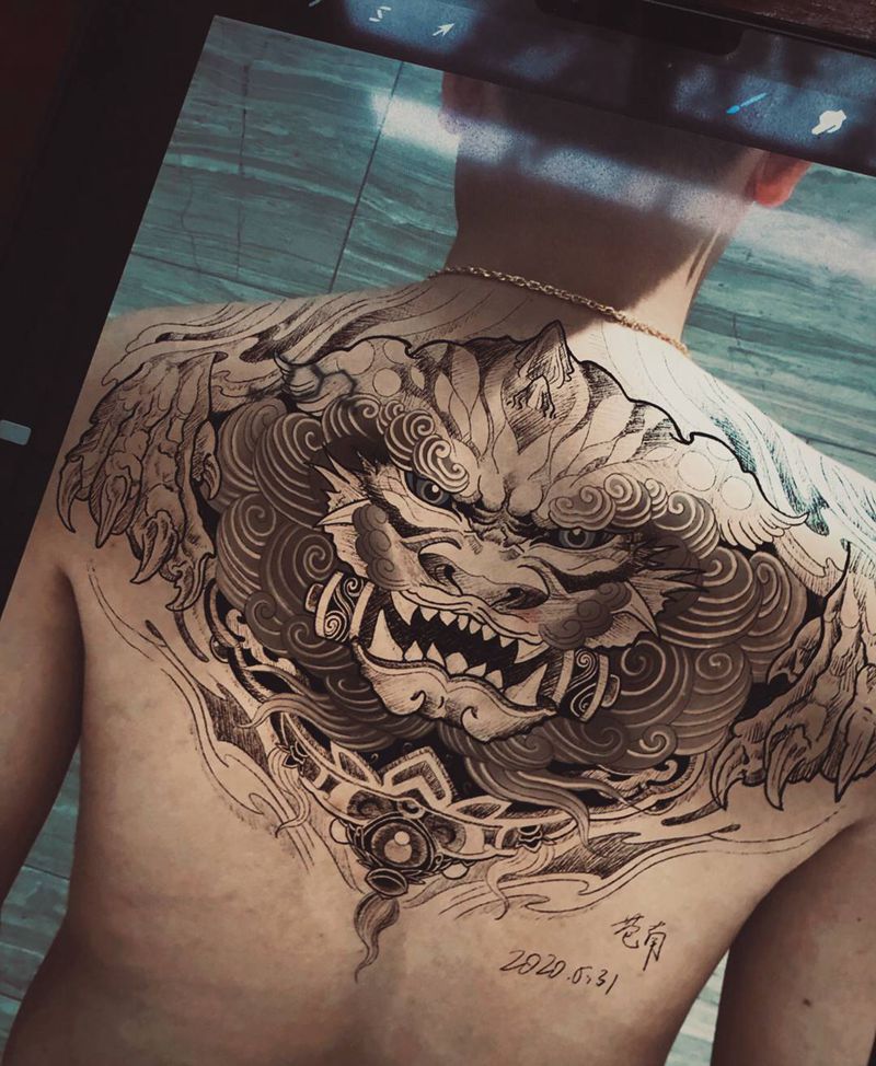 • 黑灰满背纹身图案