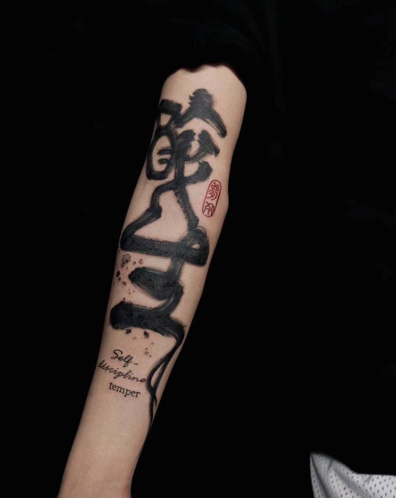 当前位置: 首页 >山东省潍坊市纹身店-青刺青工作室纹身图案>书法遮盖纹身图片_手臂水墨纹身图案
