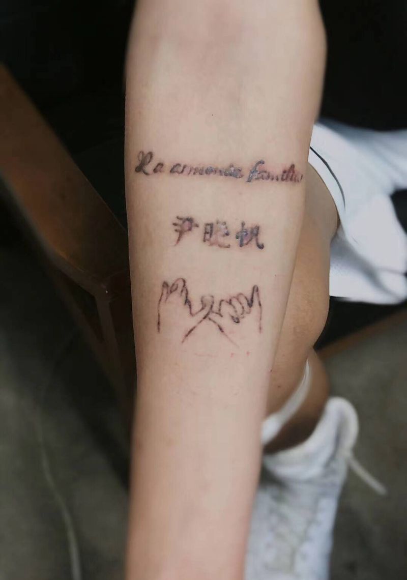 当前位置: 首页 >山东省潍坊市纹身店-青刺青工作室纹身图案>书法遮盖纹身图片_手臂水墨纹身图案