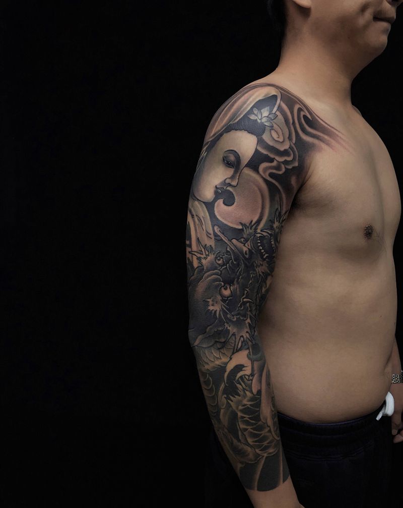 当前位置: 首页 >山东省潍坊市纹身店-青刺青工作室纹身图案>从乌鲁木齐到潍坊【花臂修改】纹身图片_手臂新传统纹身图案