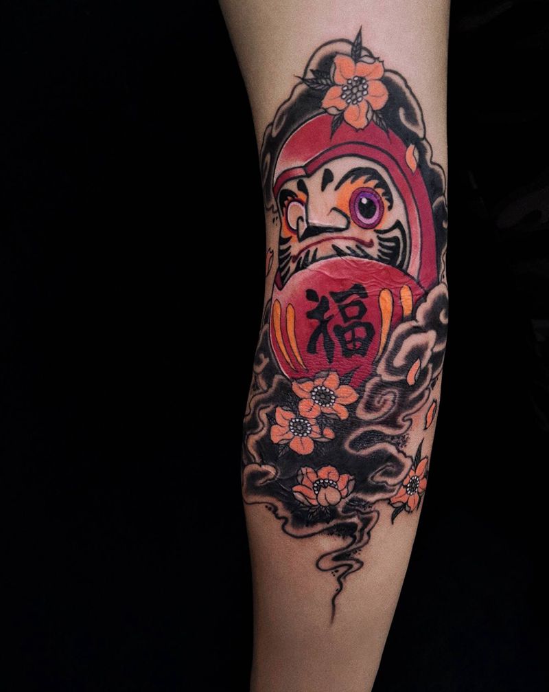 达摩蛋烫伤遮盖纹身图片_手臂新传统纹身图案