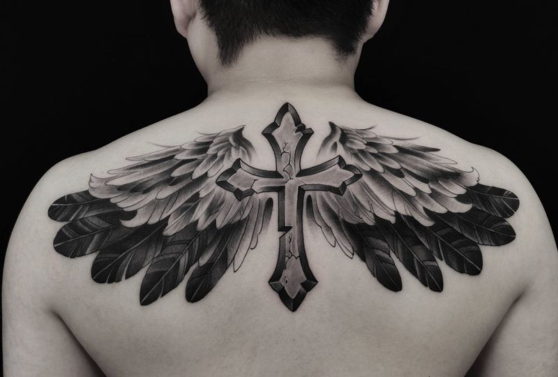 当前位置: 首页 >山东省潍坊市纹身店-青刺青工作室纹身图案>翅膀纹身图片_背部欧美写实纹身图案