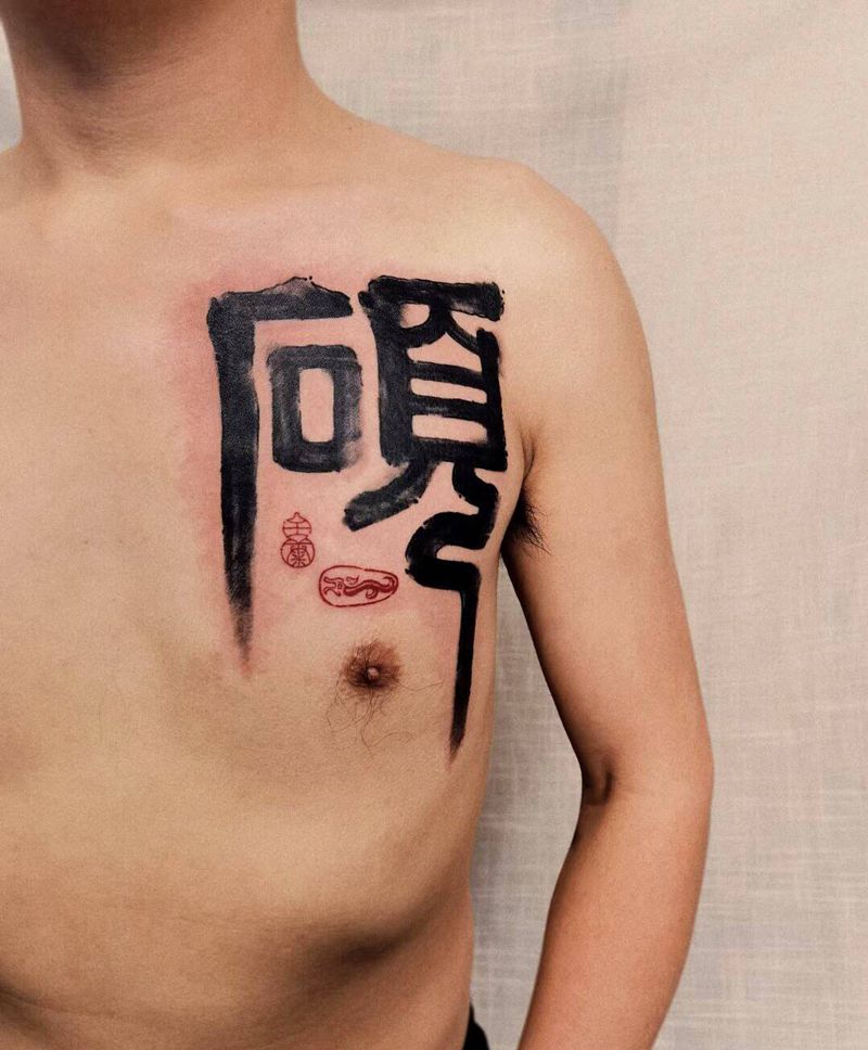 当前位置: 首页 >山东省潍坊市纹身店-青刺青工作室纹身图案>硕纹身图片_胸部水墨纹身图案