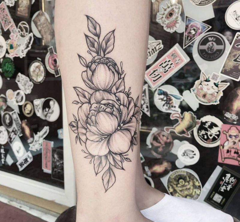 素花纹身图片_腿部胸部点刺纹身图案