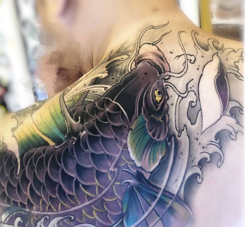 当前位置: 首页 >山东省潍坊市纹身店-茗博刺青纹身图案>鱼纹身图片_肩部背部新传统纹身图案