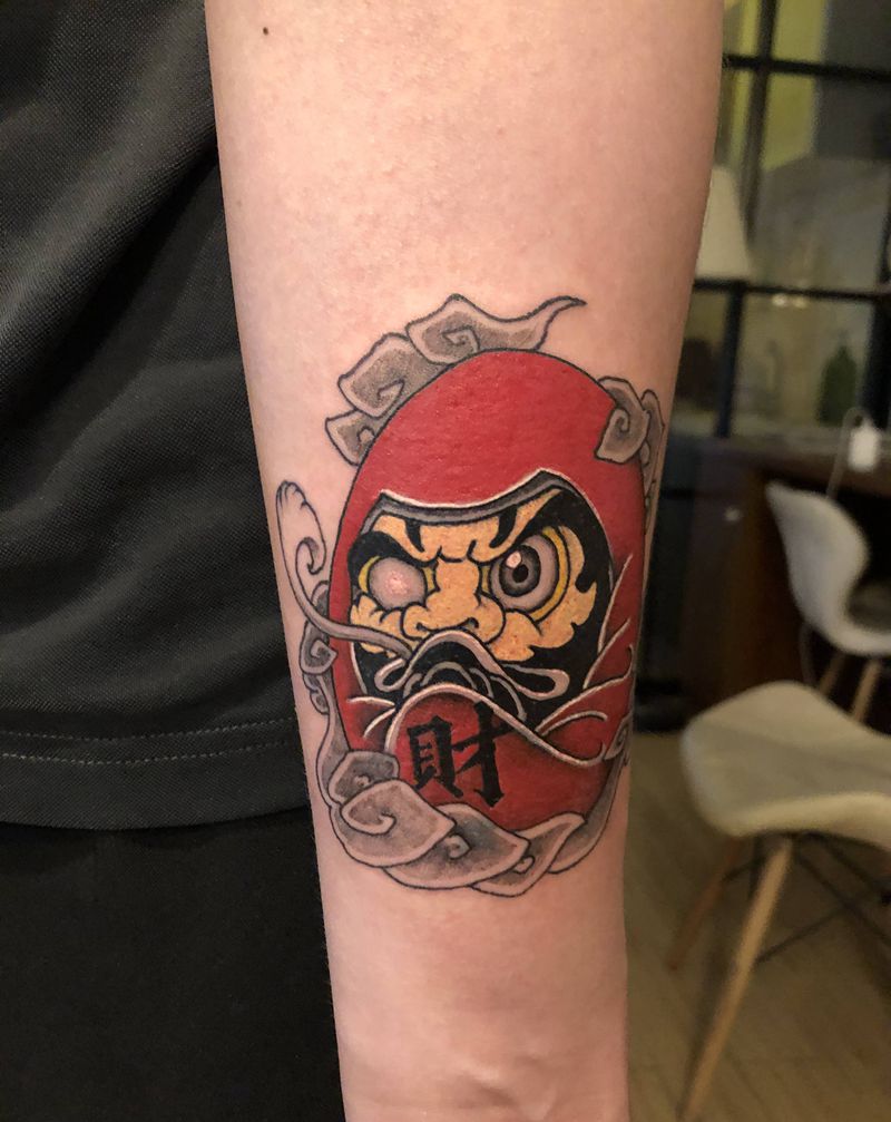 当前位置: 首页 >山东省潍坊市纹身店-澈古刺青纹身图案>遮盖(顾客自带图稍微修改)纹身图片_手臂新传统纹身图案