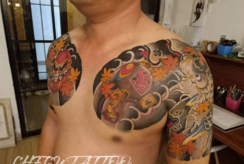 当前位置: 首页 >山东省潍坊市纹身店-澈古刺青纹身图案>半甲纹身图片_胸部手臂老传统纹身图案