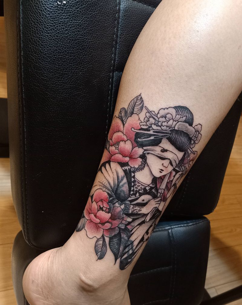 当前位置: 首页 >山东省潍坊市纹身店-澈古刺青纹身图案>脚腕艺伎遮盖纹身图片_脚部新传统纹身图案