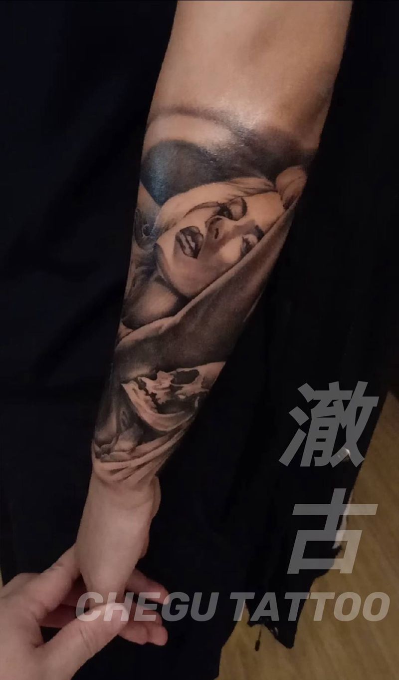 当前位置: 首页 >山东省潍坊市纹身店-澈古刺青纹身图案>写实纹身图片_手臂欧美写实纹身图案