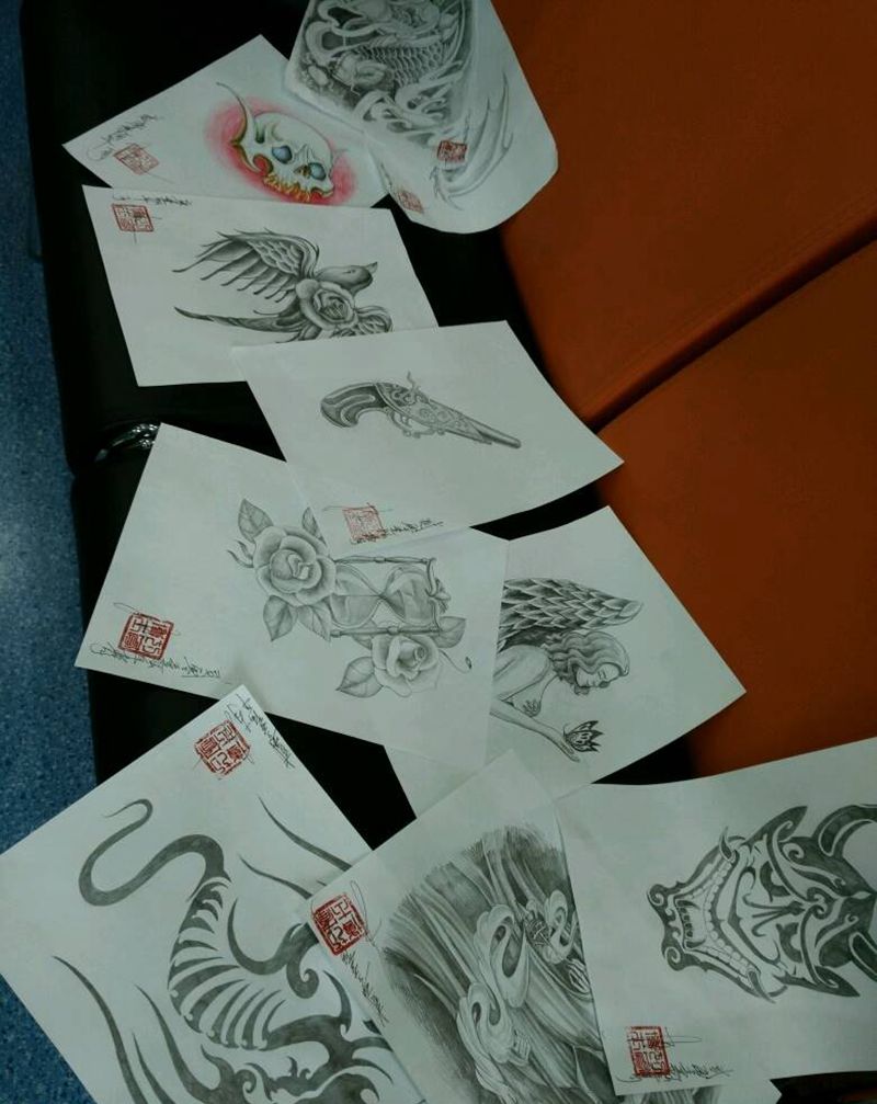 当前位置: 首页 >山东省潍坊市纹身店-澈古刺青纹身图案>手稿设计纹身图片