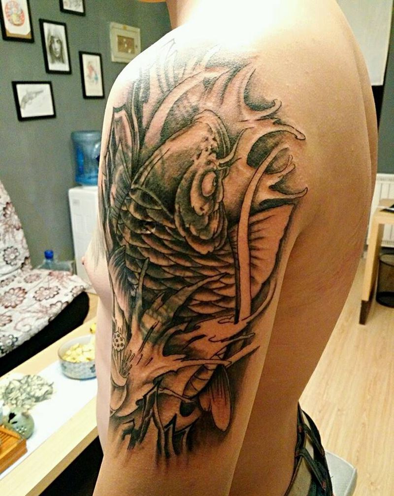 当前位置: 首页 >山东省潍坊市纹身店-澈古刺青纹身图案>鲤鱼遮盖无敌龙纹身图片