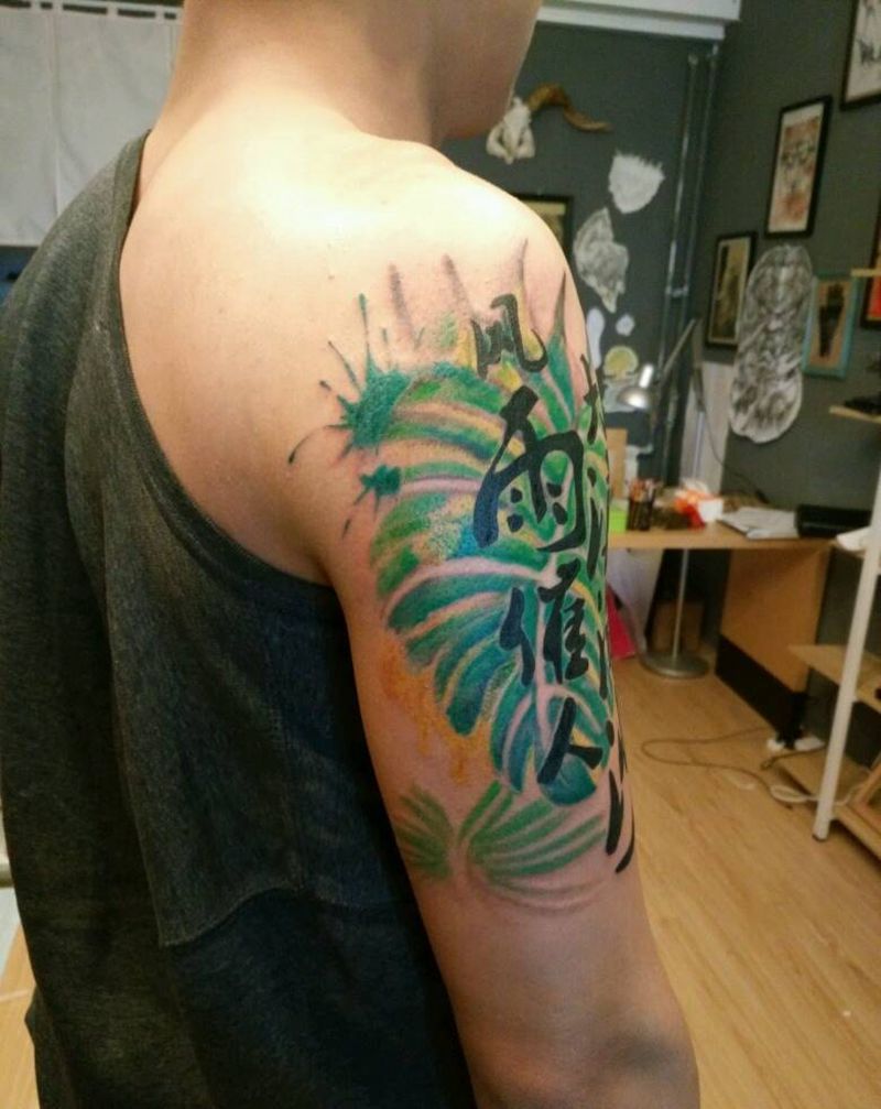 当前位置: 首页 >山东省潍坊市纹身店-澈古刺青纹身图案>书法芭蕉叶纹身图片