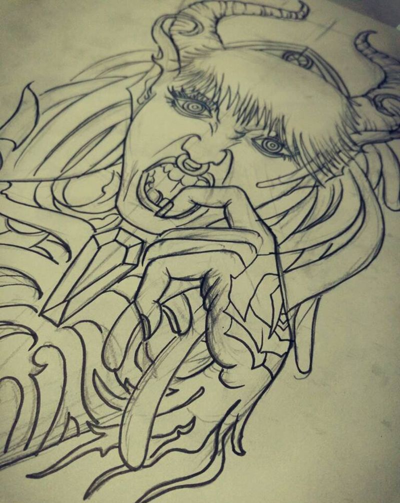 当前位置: 首页 >山东省潍坊市纹身店-澈古刺青纹身图案>一副手稿纹身图片
