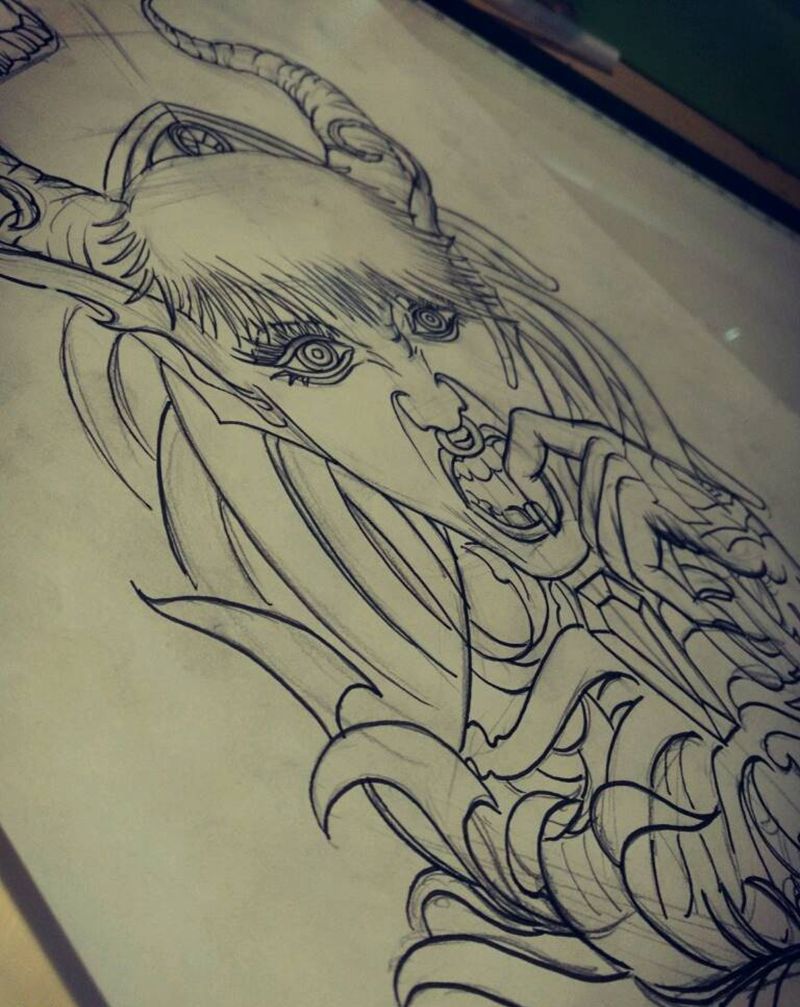 当前位置: 首页 >山东省潍坊市纹身店-澈古刺青纹身图案>一副手稿纹身图片
