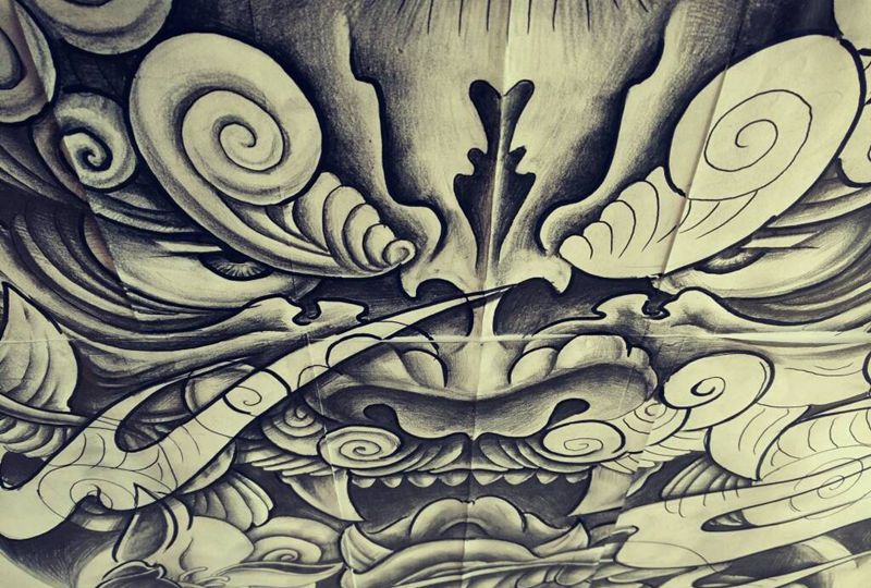 当前位置: 首页 >山东省潍坊市纹身店-澈古刺青纹身图案>满背唐狮设计纹身图片