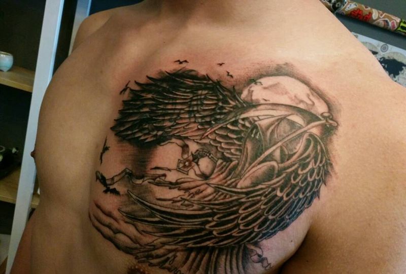 • 纹身吧推荐的披肩图腾半胛纹身图案作品展示