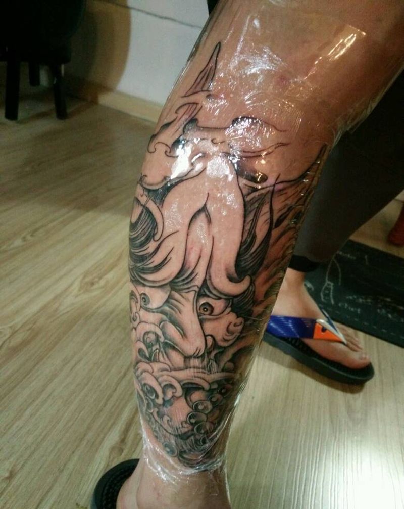 当前位置: 首页 >山东省潍坊市纹身店-澈古刺青纹身图案>小腿般若纹身图片