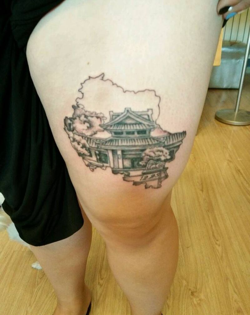 • T网红王老大花腿龙纹身图片_腿部新传统纹身图案