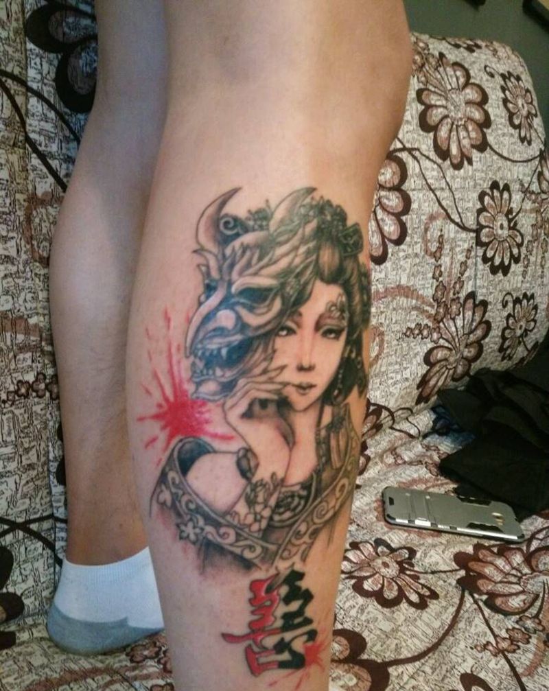 当前位置: 首页 >山东省潍坊市纹身店-澈古刺青纹身图案>小腿艺妓纹身图片
