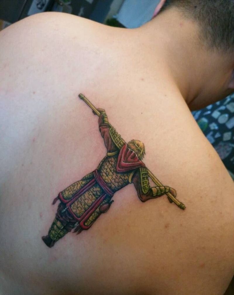 当前位置: 首页 >山东省潍坊市纹身店-澈古刺青纹身图案>大话大圣纹身图片_肩部传统鬼神成品纹身图案
